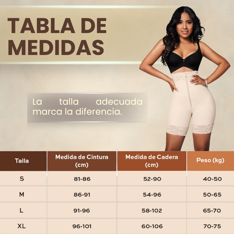 Cada cuerpo es único, por eso ofrecemos tallas desde S hasta XL. Te recomendamos medir cintura, cadera y muslos para asegurar un ajuste firme, cómodo y sin incomodidades. ¡La talla correcta hace toda la diferencia!